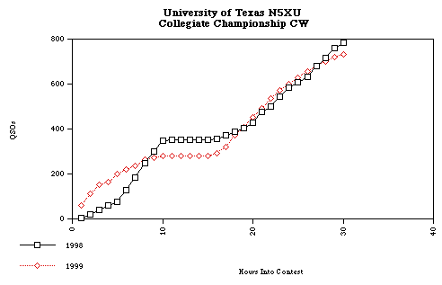 N5XU participated in the Collegiate Championship conducted during the weekend of 5-6 November 1999. We operated in the Multioperator Single Transmitter (M) class, with K5PI, KT5I, AA5BT, W5JLP, and KM5FA operating.