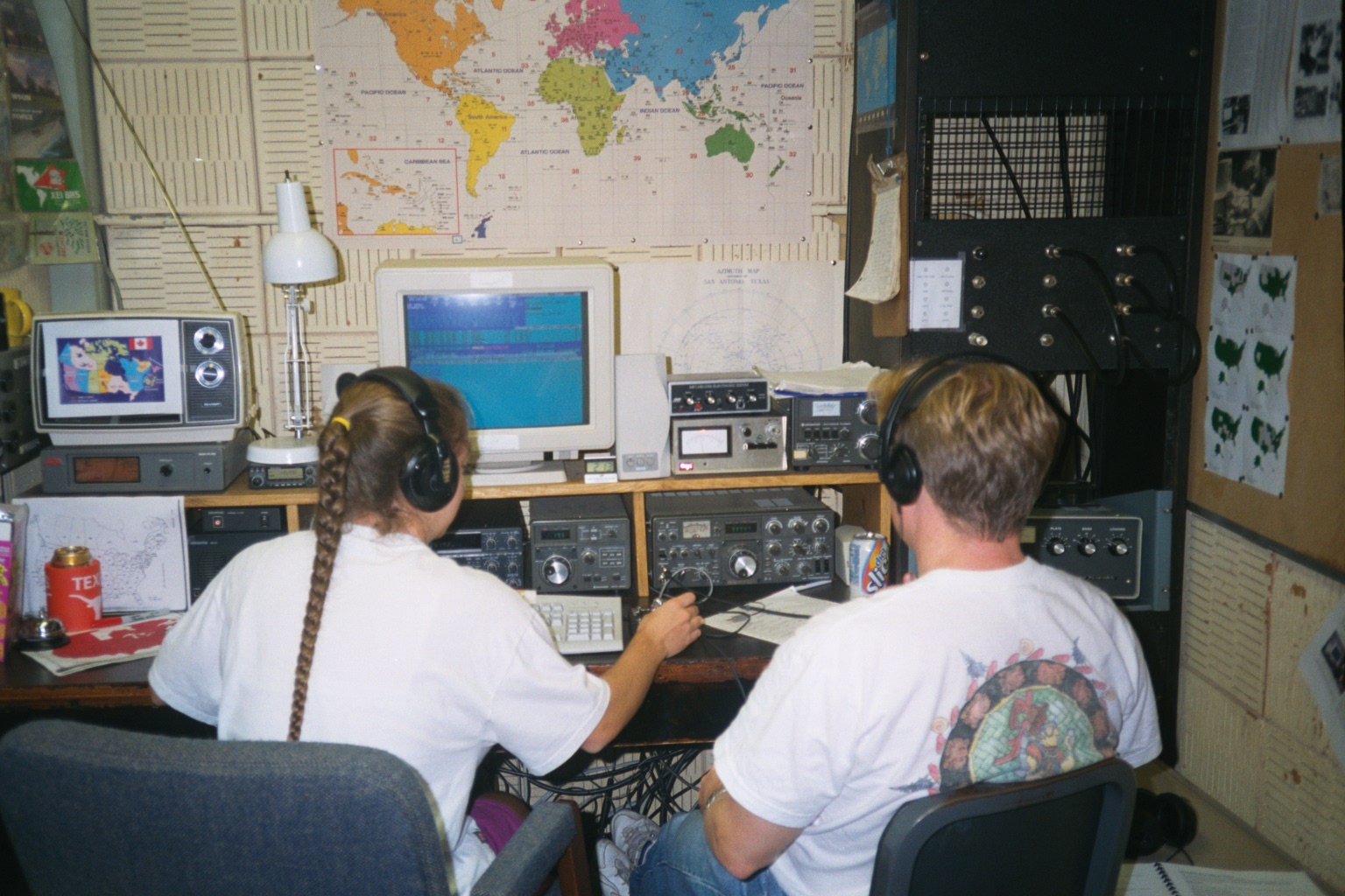 We had more operators in this year's CW Sweepstakes than any since 1989. Robert K5PI started the contest for us, and put in the most operating hours. He also had a great run on Sunday morning, helping us recover from the amplifier disaster of Saturday. Kevin KT5I also did a lot of operating, including the unpopular Sunday afternoon doldrums, for which we are all thankful. Derek AA5BT, being an astronomer, took the night shift on Saturday, chasing mults for us. This was Johanna W5JLP's first CW contest. She did some search and pounce on Saturday night, and then on Sunday night had a nice hour-long run calling CQ at 18wpm, and making lots of QSOs. Ken KM5FA was the only one willing to get up to start operating in the wee hours of Sunday morning, and he helped fill in at random spots all day Sunday. Others who visited included Louisa KB5LBN, Monique N3TNN, Monique's sister, and two hallmates of Louisa and Johanna. At one point Saturday night, nine people were in our shack at once, and boy was it crowded!