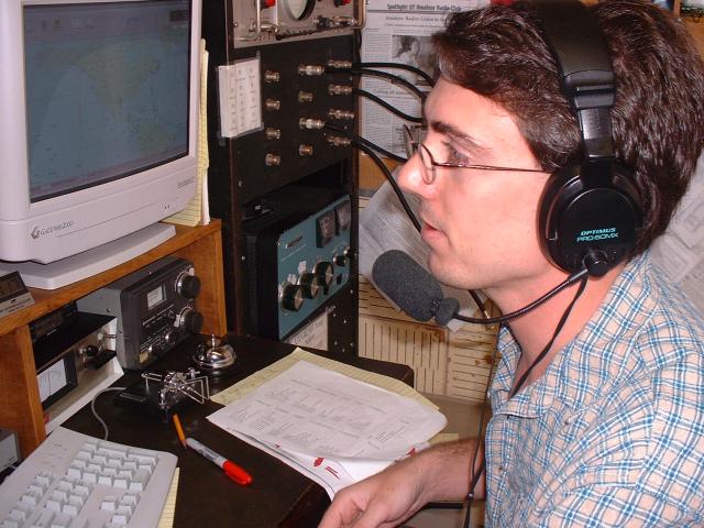 We had a slow start on Saturday this year. Last year, the first five hours of the contest yielded over 500 QSOs - this year, just 345. The first two hours, in particular, were disappointing. We started on 15 with a nice clear frequency for about 15 minutes before people crowded in on us big time, and it became painful. Some years, we get lucky and can maintain a good frequency for a few hours. Other years, we get squeezed by the big guns on either coast. Our tribander does not effectively cover both coasts at once, and when we're beaming to one or the other, we tend to get stations on the opposite coast trying to slide closer to us. We lost ground throughout the rest of the evening, and were a little under 200 QSOs behind last year's running total by 0600 UTC. We were able to make up some ground on Sunday sporadically, only to fall behind again. This year, we had more Sunday hours in the 20's and 30's, where last year we had 30's and 40's, so we ended up roughly 200 QSOs behind at the end. We had a couple of really decent Sunday hours, though - 2000 UTC was our third best hour of the contest, with 81 QSOs. Ken had a lot of fun that hour.