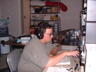 I got off to a very bad start. Right away, I noticed a problem with the DVK that I had not noticed the night before - a problem for which I had not even thought to check. I could record a new voice message just fine, and play it back once just fine, but to repeat the message, I had to hit ESC some random number of times between each DVK CQ. Sometimes two ESCs would do it. sometimes it would take three, sometimes four. It was incredibly frustrating. I restarted TR and that didn't fix it. I rebooted the computer and that didn't fix it. I noticed that the version number (6.71b) was several versions out of date, so I thought I would install the latest version (brought with me on a floppy) in case this was some quirky bug unique to 6.71b. Unfortunately, the only unzipping software on the machine was WinZIP, and I could not get past it's stupid splash screen without a mouse (I don't think Mark has one at the station.) In the process of all this, and getting run off my frequency by a station in Colorado who could not hear me, I kept working stations, and logged at least a dozen QSOs on paper. I finally got a bad audio report, though, and decided (reluctantly) that the voice keyer had to go, so I unplugged it around 1230 UTC and used my voice for the rest of the contest. I'm sure that I probably didn't CQ as often or as consistently without the keyer as I would have with it, and it did make eating a real hassle later on.