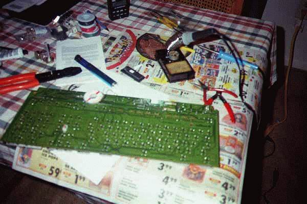 Removing buttons from an old PC keyboard to use in the Morse code keyer.