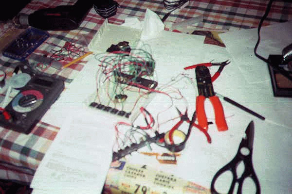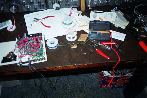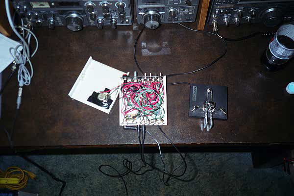 Here is an out-of-focus shot of the circuit added to the keyer. It is