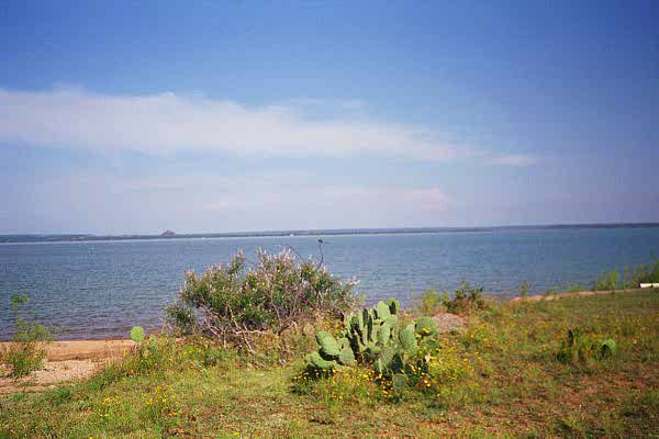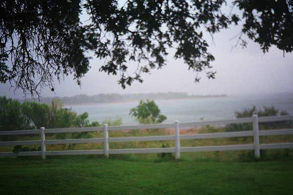 The view across Lake Buchanan from just outside the fence that runs in front of the ranch buildings.