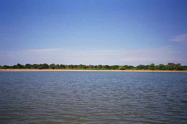 The shoreline on the other side of a small cove near the station. The land on the opposite shore is also a part of the cattle ranch.