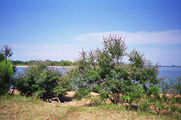 Most of the flowering bushes and wildflowers in central Texas have gone by mid-June, but this bush still has some small purple flowers on it.