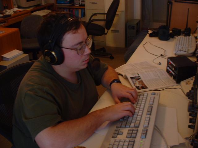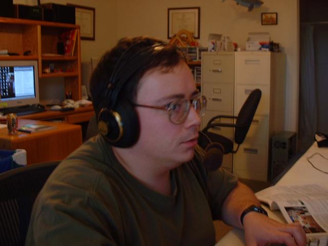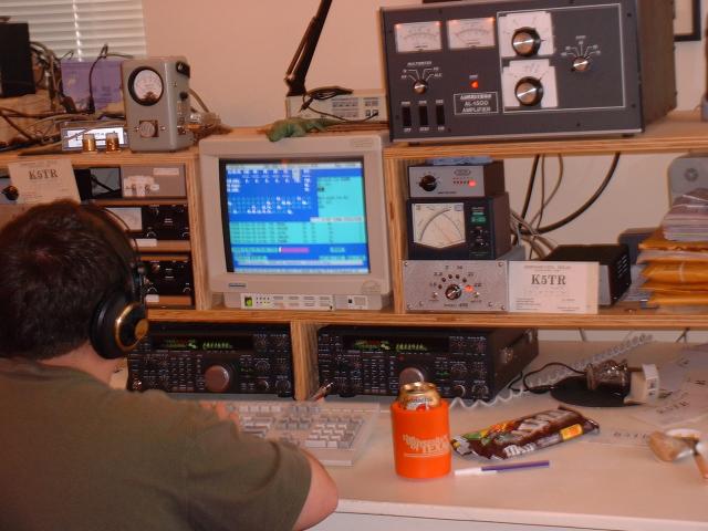 This is the best photo to see the deluxe K5TR headset. George took an AKG headset and grafted a Heil microphone boom from a destroyed Proset. The irony is that I was the one who destroyed the Heil Proset. Actually, that isn't really ironic.