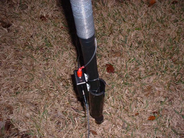This photo gives you an idea of how large the coil is. The coil is held in place at the top and bottom with electrical tape. In a real production version, I'll probably wrap the entire length of the coil with Scotch 33+.