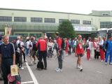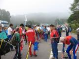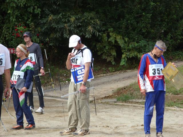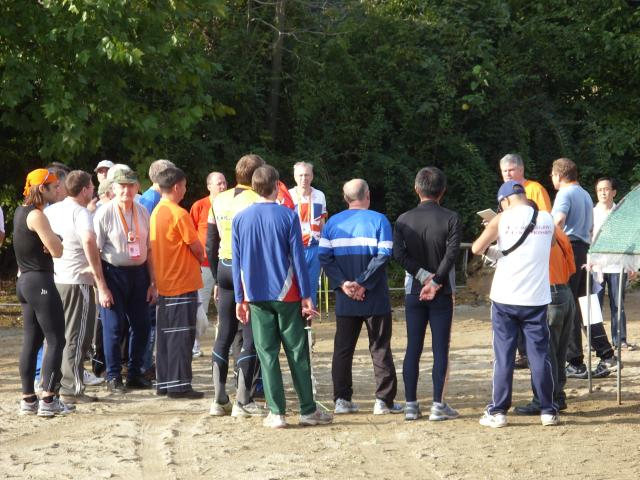 Runners from a variety of countries. The gentleman with the 144 MHz receiver in the center of the photo is wearing the team kit of Germany. |