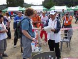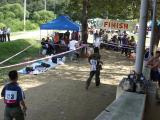 Two runners arrive at the finish line. Bib number 224 is Akihiro Sakaguchi JF6UXE (M40) from Japan. Akihiro found three transmitters, but finished about 40 minutes overtime. Bib number 123 is Xia Ziwen (M21) from China, who found three transmitters but finished seven minutes overtime. |