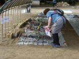 Some members of Team Japan, waiting for the buses. The fountain they are sitting on was turned off during the night and had not yet been turned on that morning. I don't know what the small sign says - probably "keep off the grass". |
