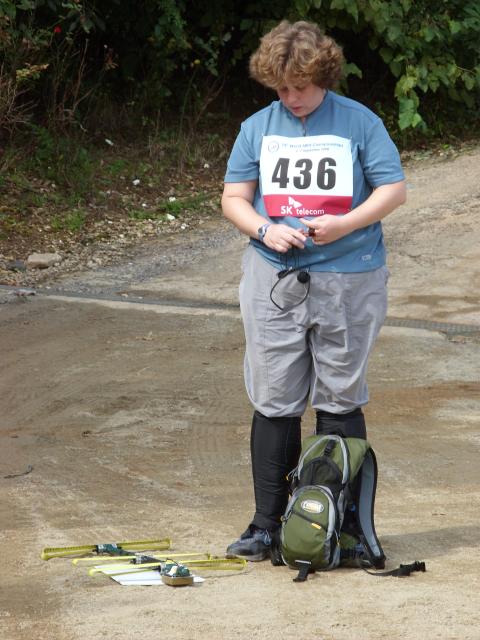 Me, standing next to the control a few minutes before the first start. The yellow bracelet I'm wearing is supposed to be a bug repellant. |