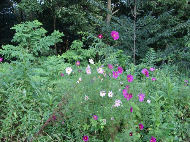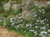 Some flowers on the side of the country road. |