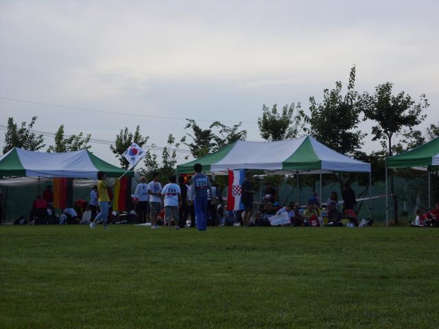 Yoo brought a tent with him for us to sit in during the six or seven hours of the competition. It was purple and cyan, which required a certain amount of effort to camouflage. |