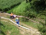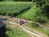Wednesday, September 3, was the practice day. On the practice day, the organizers put out transmitters that are identical to the transmitters that will be in the field on the competition days. They are placed in a smaller area than the area in which the competition days will be held. Competitors are given a map of the area and can use the opportunity to familiarize themselves with the kind of terrain they will encounter on course. The practice day is also an opportunity to test and adjust the radio receiver gear for optimal performance. We discovered a few useful points of information this way: the transmitters that the Koreans used were louder on 80 meters than what we in the USA were used to, and the maps were not likely to include some man-made objects, including fences.