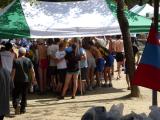 A group of competitors has retrieved their receivers and are waiting for the signal to move to the next step in the start process. In the center of the photo is Harley Leach KI7XF, adjusting his hydration system. Surprisingly, few competitors seemed prepared to carry their own water on course. |