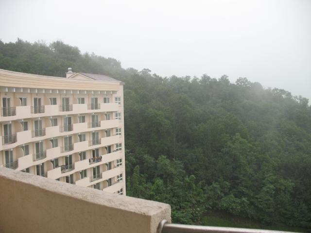 We had a room on the 19th floor. This was the view from our balcony, looking at the hotel and the woods behind it. |
