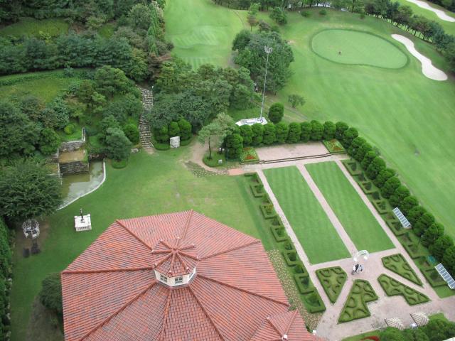 Some more views from our room. In the distance, you can see some tall netting behind the trees. Driving ranges, or "net golf" as we saw it called in several other locations, were common in the suburbs of Seoul. |