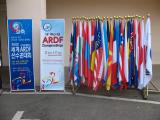 Banners and flags at the hotel entrance. There were 31 flags for the 31 countries represented by competitors, officials, and observers. As it turns out, two of the teams didn't make it after all - but their flags were there nonetheless. |