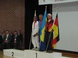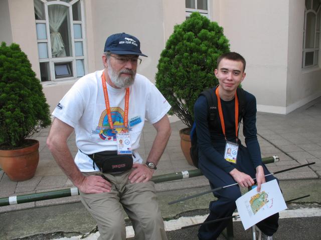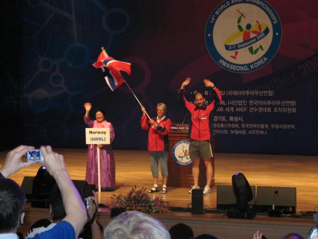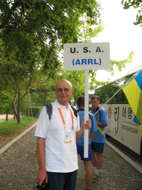 Dale Hunt WB6BYU and Villy Hansen OZ6KH. The flag that Dale is carrying is one he brought with him to Korea - it has travelled with Team USA to every World Championships that the USA has been to. |