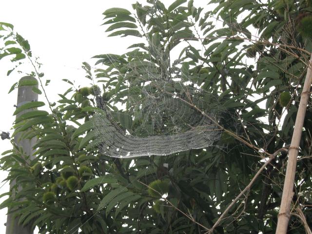 A big spider web, probably a meter across. We saw some very big spiders in the woods. |