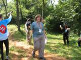 Jen Harker W5JEN is called up to collect her receiver. Like Harley, she's wearing a Camelbak hydration system. She carried about a liter and a half of water into the field. |