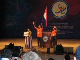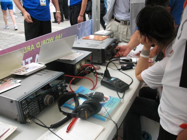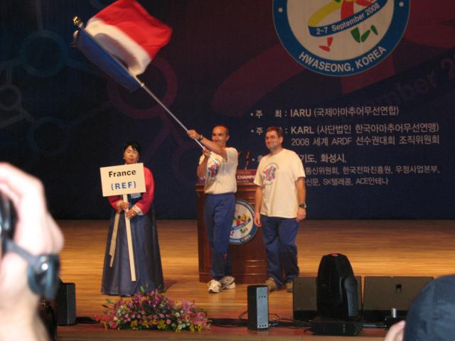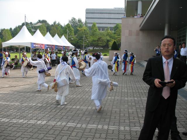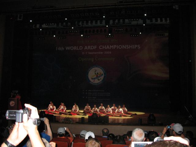 The opening ceremony for the championships was held at the University of Suwon (which is actually located in Hwaseong, not Suwon) - about a 25 minute bus ride from the hotel. The main ceremony took place indoors in a big performance hall, while outside they had a special event amateur radio station. In the performance hall, everyone was provided with special FM radios that could receive a live English-language translation of the few parts of the show that were only in Korean.