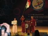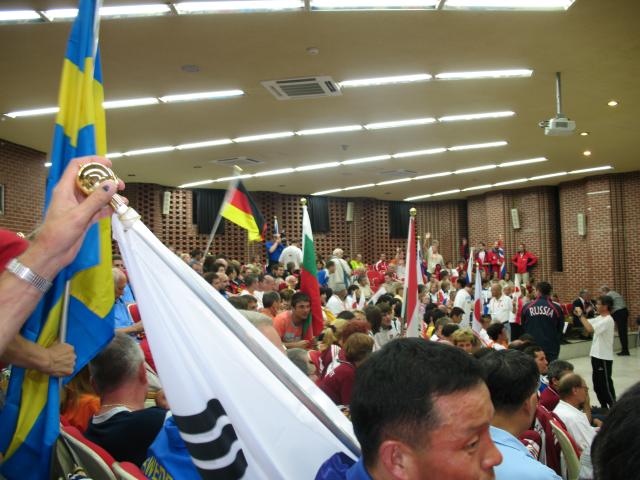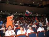 The performance hall begins to fill up with competitors, observers, and officials. Every team brought along their national flag for the ceremony. |