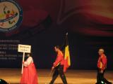 Team Belgium brought five competitors to the championships. Every team had a banner with its name (in English) and IARU member society abbreviation on it carried by a woman in traditional hanbok. |