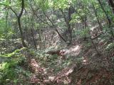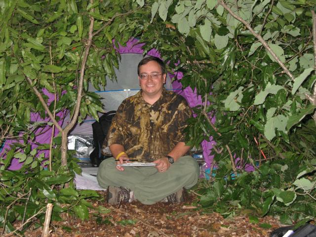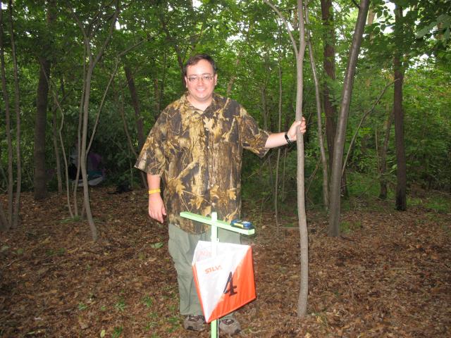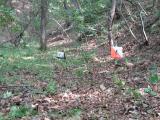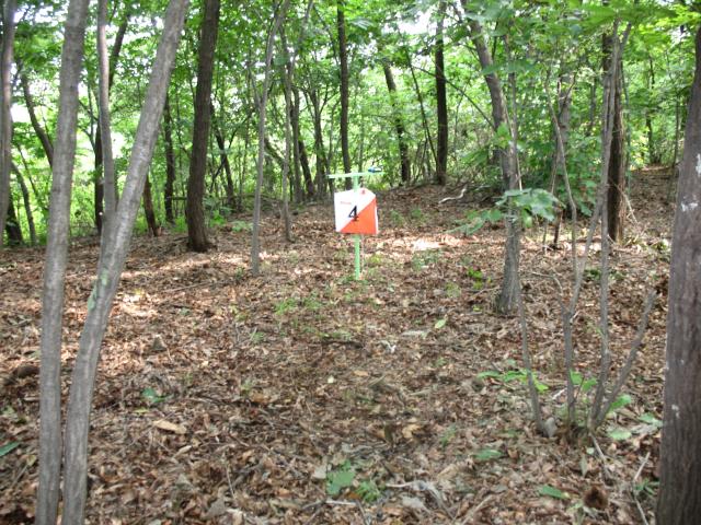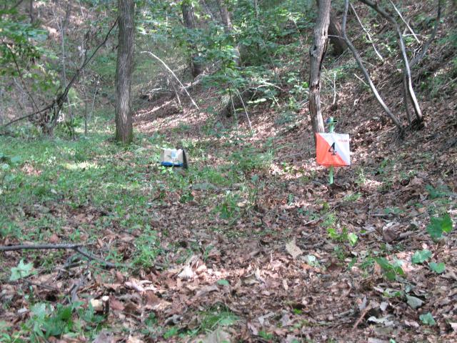 Transmitter location four (MOH) about an hour before the first runner arrives. The transmitter location was surrounded by moderately thick woods about 200 meters from a trail junction. |