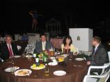 A garden party at the hotel followed the 3.5 MHz awards ceremony. Panayot Danev LZ1US, an international juror from Bulgaria (far left) and Ole Garpestad LA2RR, the president of IARU Region I and an international juror from Norway (far right) are dining with two of the Korean organizers. Every table at the party had endless beer and soju. |