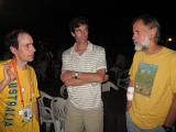 Bryan Ackerley VK3YNG (M40), Charles Scharlau NZ0I (M40), and Bob Cooley KF6VSE (M60) at the after-event party. Bob injured his arm during the 3.5 MHz competition. Nonetheless, Bob finished in seventh place, less than 12 minutes out of third place, the third-best finish for an American at this World Championships. |