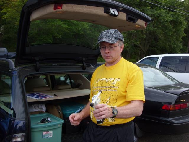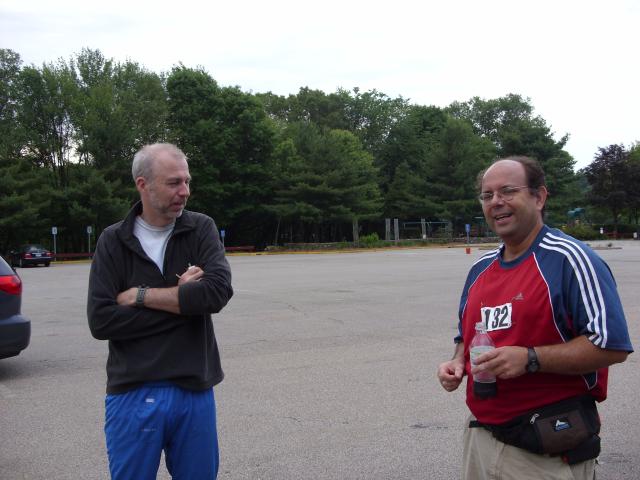 In the parking lot of the Blue Hills Reservation on the morning of the two meter competition, David Willams M3WDD from London, England and Matt Robbin AA9YH from Cincinnati, Ohio. David is one of the three authors of Radio Orienteering: The ARDF Handbook, the only English-language book published so far that focuses exclusively on ARDF.
