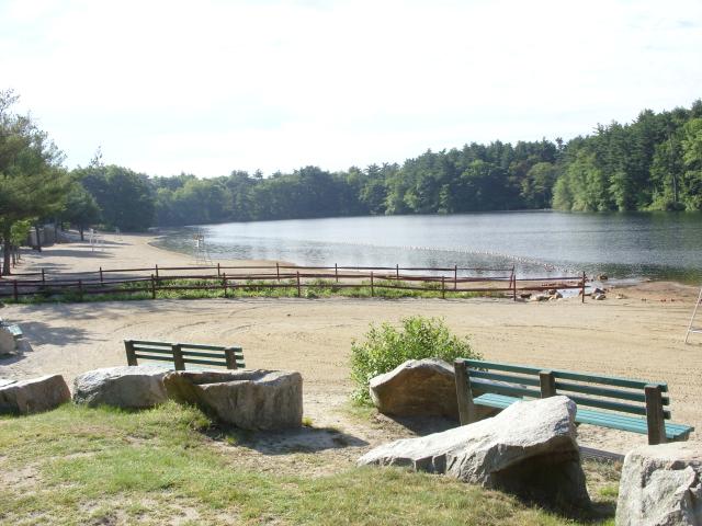 The parking lot was a short walk from Houghton's Pond, which had a nice beach with a designated swimming area and a small visitor center with restrooms.
