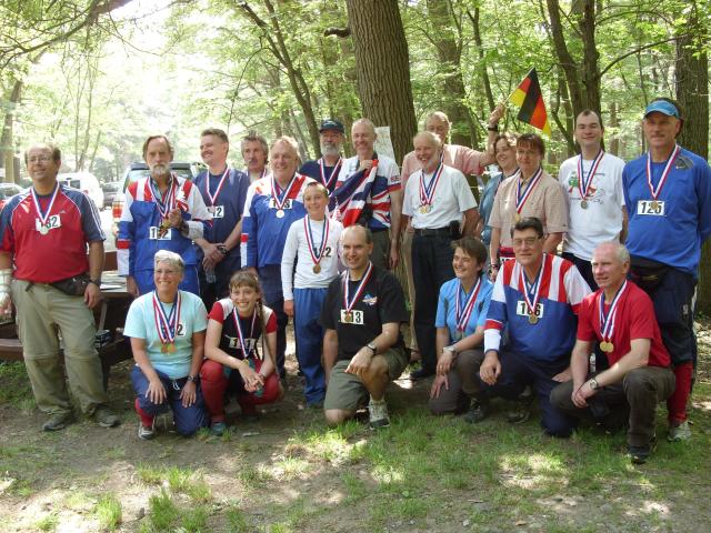 Most of the medal winners in this year's competition (some had to leave early to catch airplanes). From left-to-right, back row: Matthew Robbins AA9YH (Ohio), Bob Cooley KF6VSE (California), Leszek Lechowicz NI1L (Massachusetts), Igor Kekin (Russia), Dick Arnett WB4SUV (Kentucky), Dale Hunt WB6BYU (Oregon), David Williams M3WDD (England), PA Nordwaeger SM0BGU (Sweden), Nick Roethe DF1FO (Germany), Jen Harker W5JEN (Texas), Brigitte Roethe (Germany), Matthias Kuehlewein DL3SDO (Germany), and Jerry Boyd WB8WFK (New Mexico). Front row: Ruth Bromer (North Carolina), Lori Huberman (Massachusetts), Addison Bosley (Kentucky), Harald Dettling DC1GB (Germany), Susanne Walz DG4SFF (Germany), Bob Frey WA6EZV (Ohio), and Nikolay Ivanchihin UR8UA (Ukraine).